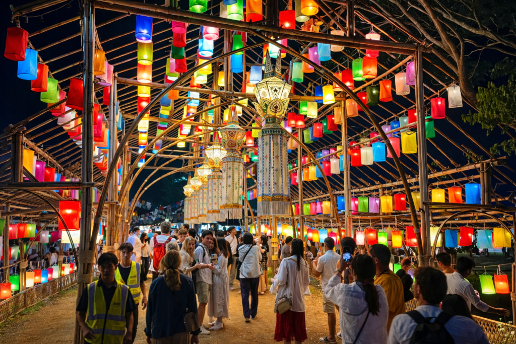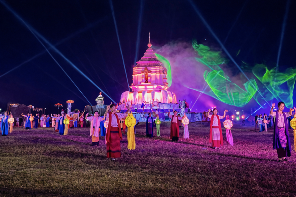 The event includes a synchronized lantern release, fireworks, traditional Lanna performances, and a complete Thai festive experience.